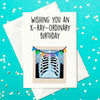 With the playful greeting, "WISHING YOU AN X-RAY-ORDINARY BIRTHDAY," this card is a nod to those in the medical field, science enthusiasts, or anyone who appreciates a clever twist on words. It's the ideal way to acknowledge the day in a unique style that's sure to stand out on the mantlepiece among the sea of traditional birthday cards.