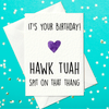 Introducing the "Hawk Tuah - Spit on That Thang" card, exclusively from Prickly Cards, where sass meets celebration! This A6 gem is perfect for that friend who loves a good laugh and isn't afraid to keep things cheeky. Featuring a bold purple heart and a playful message, this card is guaranteed to stand out amongst the sea of boring, generic greetings.